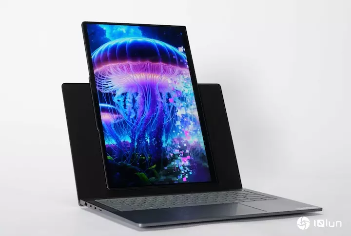 本次大会最受瞩目的新品之一,是ThinkBook VertiFlex Concept概念笔记本。它是业界首款搭载14英寸旋转屏幕的机型,用户能在垂直与水平模式间自由切换,特别适合程序开发、文件处理与多任务应用。操作方式也很简单,由屏幕右上角逆时针轻推边缘,整个屏幕就会在机身内旋转90度,伴随的自动转向,调整为更适合文件、程序设计或滚动浏览的视图。