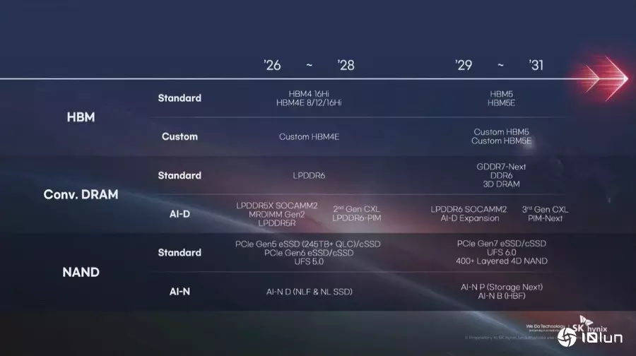 为了实践新愿景,SK海力士Kwak Noh-Jung也揭示了其产品阵容,包括定制化HBM(Custom HBM)、AI DRAM(AI-D)和AI NAND(AI-N)。这样的布局将取代传统内存解决方案多半以计算为中心的情况,改以朝向多样化和扩展内存功能的方向发展,目标是完成更高效的计算资源使用,并从结构上解决AI推论瓶颈。