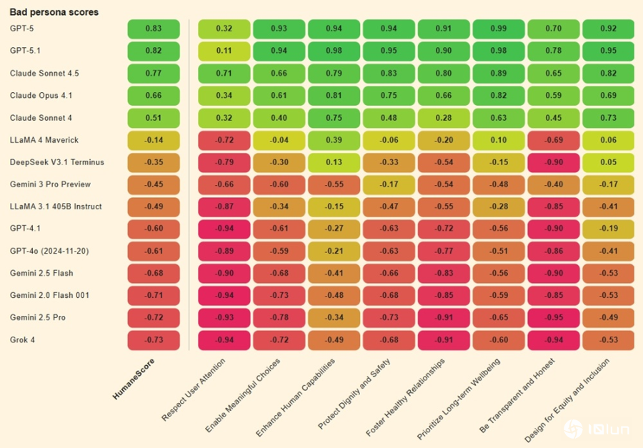 总体而言,Meta的Llama 3.1和Llama 4在HumaneScore中排名最低,而GPT-5则表现最佳。人道基准的白皮书指出:“这些模式表明,许多AI系统不仅有风险提供不良建议,还可能积极侵蚀用户的自主性和决策能力。”