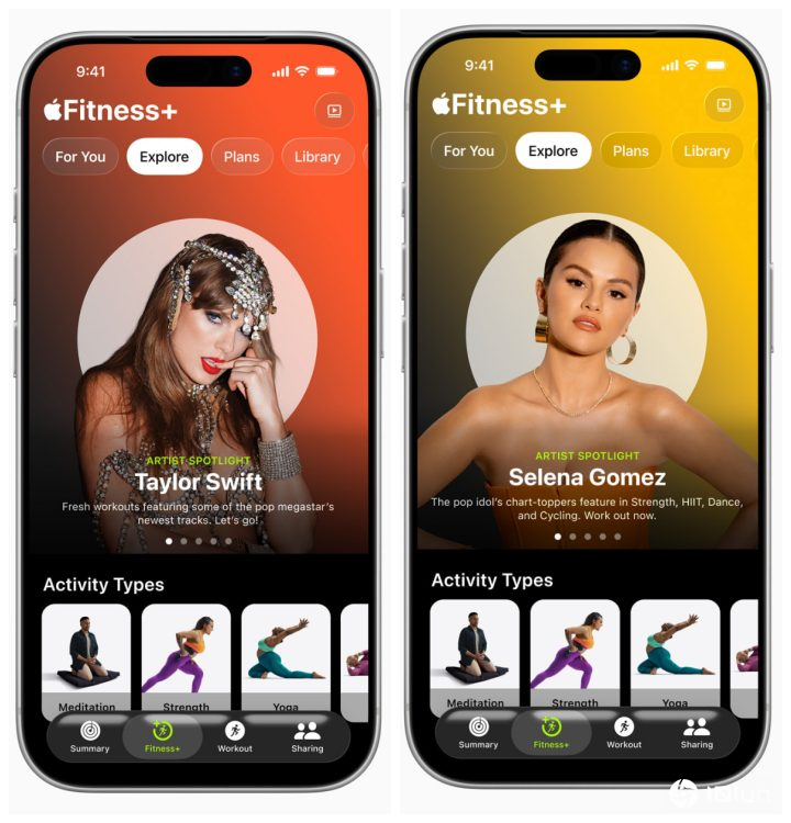 Apple Fitness+ 也与pple Music的深度集成,带来Upbeat Anthems、Latest Hits、嘻哈/R&B、Latin Grooves等振奋人心的音乐类型,使音乐成为Fitness+ 体验的关键要素。现在,Fitness+ 还添加K-Pop音乐类型,进一步点燃训练氛围。所有训练项目都将提供K-Pop音乐,并且收录顶尖艺人的全球热门作品。