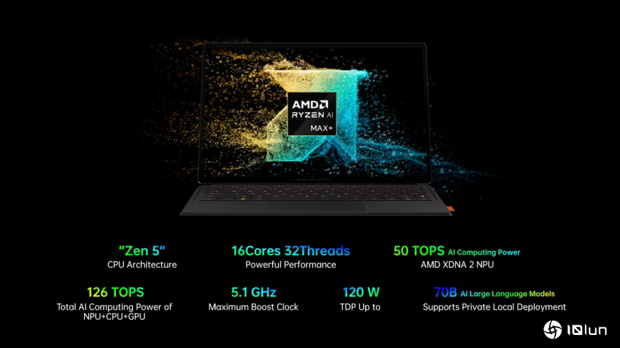 Super X搭载AMD Ryzen AI Max+ 395处理器,具有16组Zen 5架构处理器核心、32条线程,最高时脉可达5.1 GHz,搭配具有40组运算单元(CUs)的Radeon 8060S内置显示芯片,最高时脉可达2.9 GHz,内存部分最高可选容量达128 GB的LPDDR5X-8000,满足执行高参数量AI模型的需求。