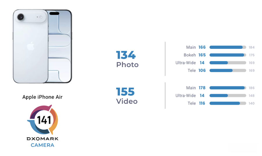 苹果今年主打轻量化与新外形的iPhone Air,自发布以来最大的争议莫过于后置相机仅搭载单一镜头。外界质疑,在旗舰拍摄规格全面走向多镜头时代,iPhone Air是否会在形象体验上大幅退步。如今专业评测机构DXOMARK公布了完整相机测试结果,为市场提供更具体的参考。