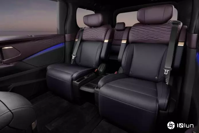 车箱内栊延续“移动中的VIP私人会客室”概念,内饰以手工缝制皮革与木纹饰板铺陈,并导入双14.3英寸屏幕组合的数码座舱。第二排独立座椅可全电动调整合具备脚靠功能,搭配BOSE音响与64色环舱照明,营造头等舱等级舒适体验。