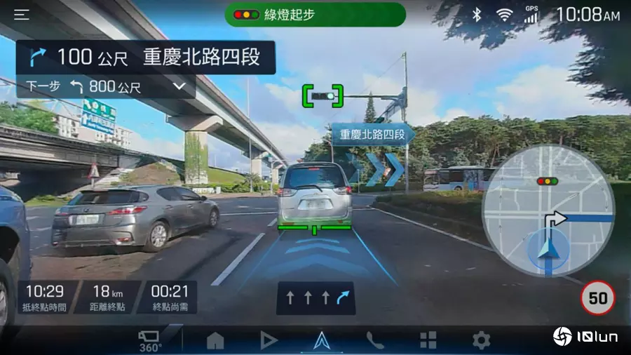 AR安全辅助功能会在路口处侦测红绿灯号志的变化,并即时发出“绿灯起步”提醒。