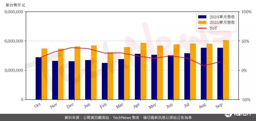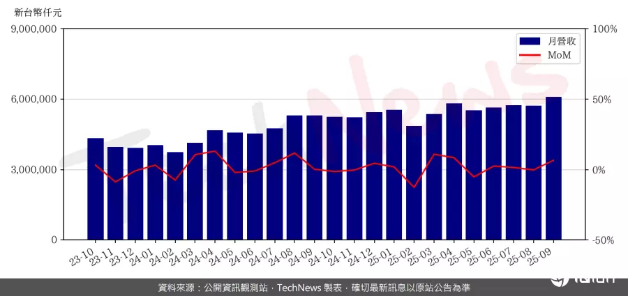 半导体设材料厂崇越科技公布9月营收,单月营收首度冲破60亿元大关,达60.9亿元,较8月份增加3.8亿元,增长6.6%。相较2024年同期,金额增加7.8亿元,增长达14.6%。前三季累积营收达502.8亿元,较2024年同期增加22.4%。