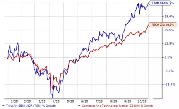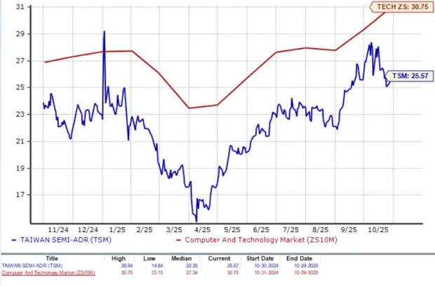 就现阶段来说,从市场表现上台积电持续展现出强劲的增长趋势。截至目前为止,台积电的股价在2025年迄今已上涨约54.5%,表现优于Zacks顾问公司所设置的计算机与技术类股30.9%的涨幅。在市值方面,台积电的交易价格相对于行业平均值仍显得较为保守。公司市盈率为25.57,低于相关类股平均的30.75。