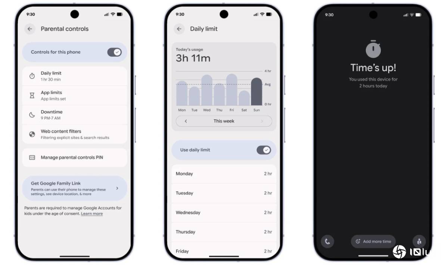 通过Android设置中的全新“家长安全监护”选项,家庭成员现在可以通过统一集成的入口,轻松使用内置的设备管理功能以及Family Link。