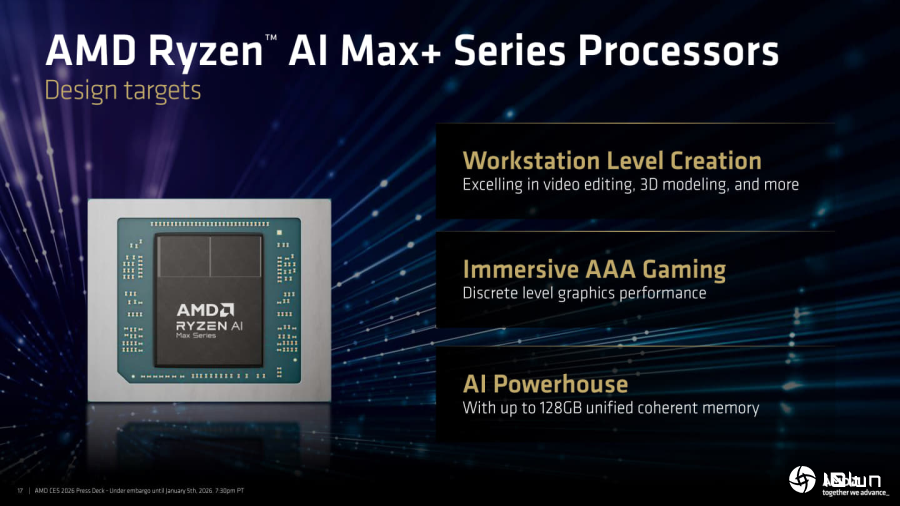 AMD于CES 26发布的产品包含桌面与移动版处理器。