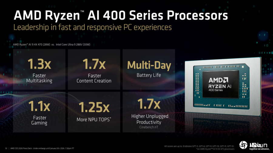 AMD宣称Ryzen AI 400系列处理器能够提供多日电池续航力。