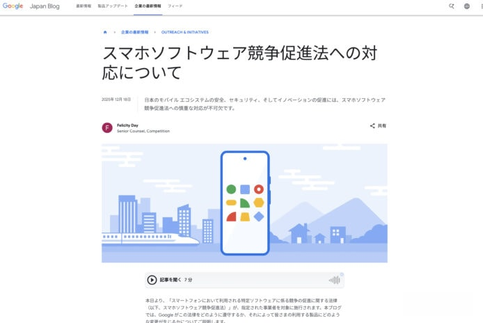 日本2025年12月18日落实《智能手机特定软件竞争促进法》(下称《智能手机法》),针对Apple及Google两大科技巨头实施监管。日本公正交易委员会要求两者开放应用应用商店及支付系统选择权,两家公司同日公布日本市场应对方案。