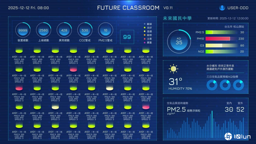 宏碁在教室智能空气品质管理走得很前面,不只可以即时知道各个教室的空气污染资讯,通过累积的大数据,还能在空气污染来袭前提前准备,维持教室空气品质稳定。