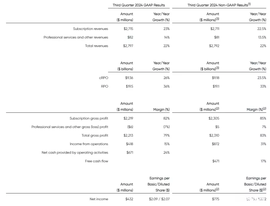 ServiceNow第三季GAAP服务费营收年增23%至27.15亿美元。