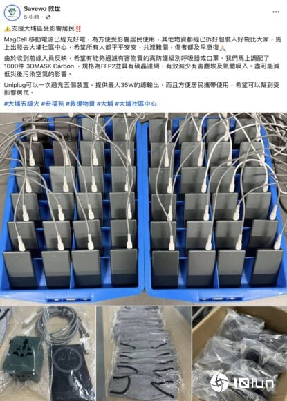 通信、报平安都需要手机,移动电源作为应急灾害时的重要工具,香港数码产品生产商SAVEWO救世,以及XPower香港及澳门团队支持大埔受火灾影响居民。