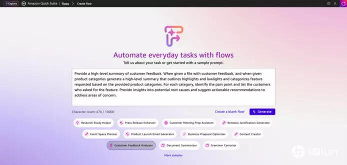 传统上,商业用户需要在多个应用中拉数据、查指标、集成报告,甚至要找专业团队协助分析,流程繁琐且经常需要重复操作。Quick Suite以AI助手概念出发,把数据搜索、BI报告自动化、跨部门流程协作全部纳入一个平台,无论你是经理、分析师还是IT,同样可以通过自然语言查询、获取洞见,并即时转化为行动。