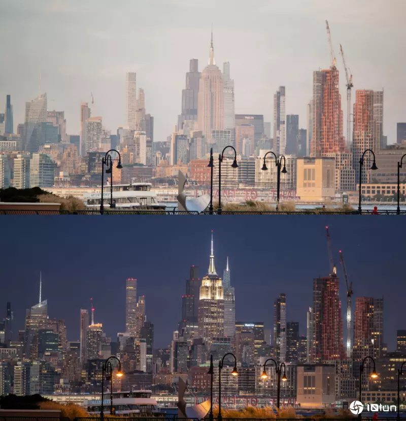 上图:使用Caira拍摄的原始照片/下图:通过Nano Banana编辑生成一张夜景照。